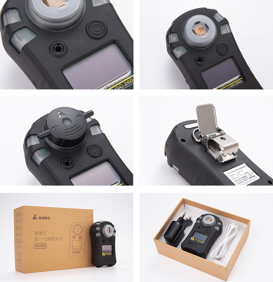 便携式GC260气体检测报警器(以下简称检测报警器),是一种可连续检测作业环境中可燃气体浓度的本质安全型仪器。它适用于防爆气体泄漏抢险、地下管道或矿井等场所,能有效保证工作人员的生命安全不受侵害,生产设备不受损失。 检测报警器为自然扩散方式检测气体浓度,采用催化燃烧式传感器,仪器采用嵌入式微控制技术,菜单操作简单,功能齐全,可靠性高,整机性能可靠。 检测报警器外壳采用高强度工程材料、复合弹性橡胶精制而成,具有强度高、手感好,并且防水、防尘、防爆。